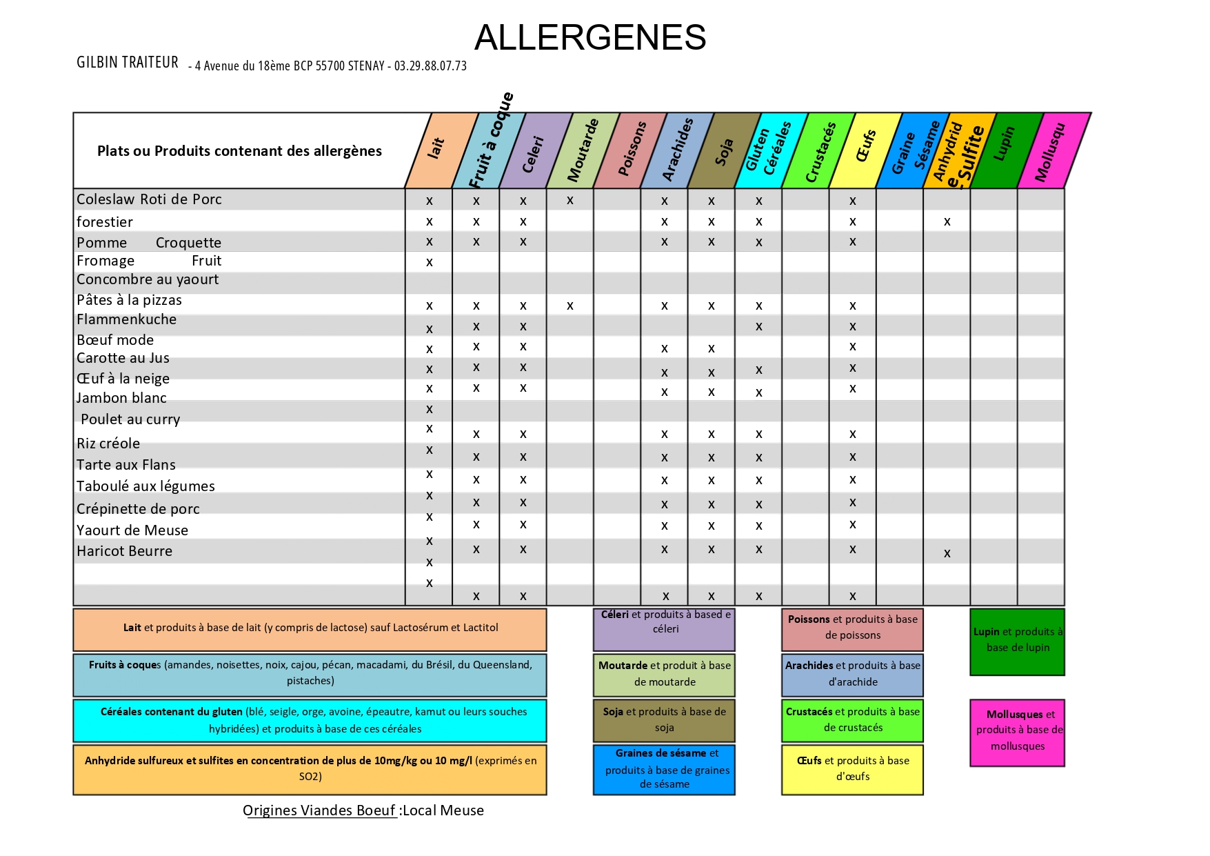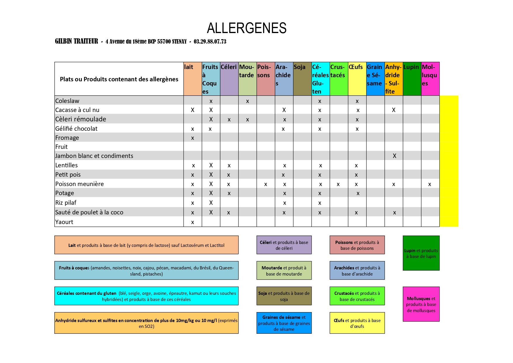 pour voir le tableau des ALLERGENES