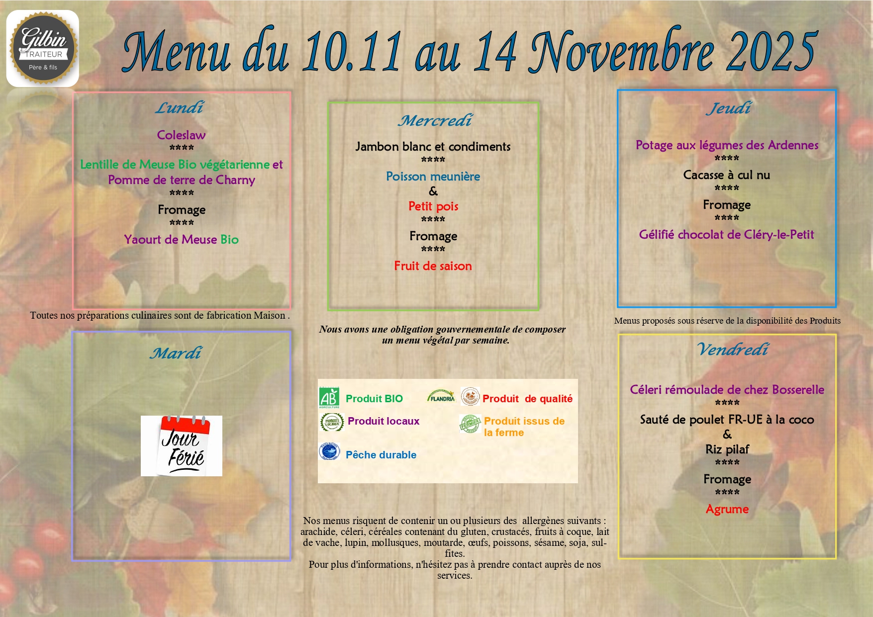 Menu de la semaine du 10 au 14 novembre 2025